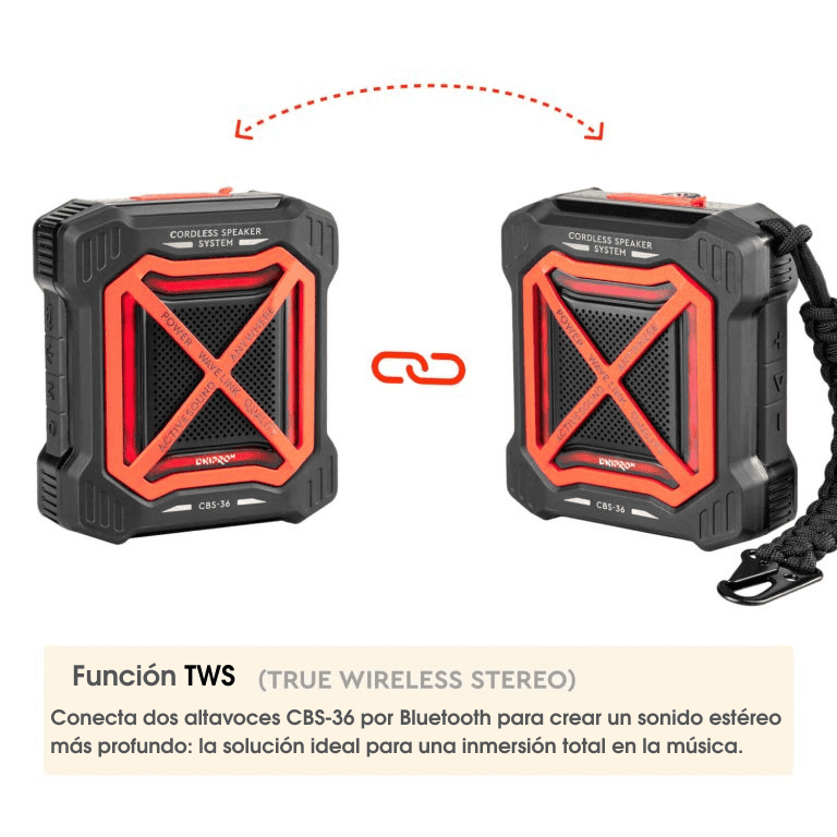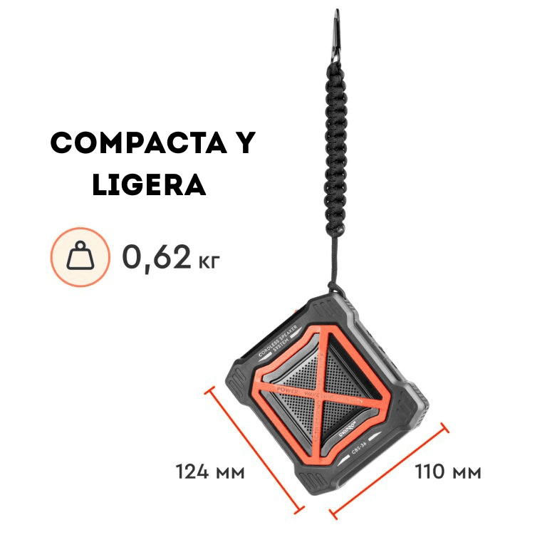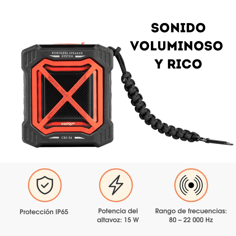 es un altavoz portátil compacto, potente y resistente, diseñado para el trabajo, el ocio y las actividades al aire libre.